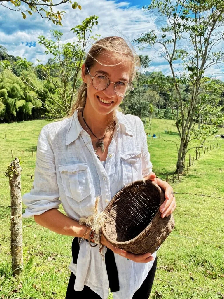 A właściwie – Dominika Chmielewska. Na zdjęciu obok zbieram ziarna kawy w Kolumbii.